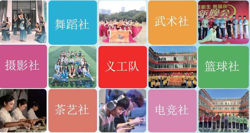 學校設(shè)有學生干部和學生社團聯(lián)合會組織。學生干部聯(lián)合會由團工部、紀檢部、廣播站、社會實踐部等部門組成。學生社團聯(lián)合會有舞蹈社、化妝社、籃球社、武術(shù)社、攝影社、魔術(shù)社、書法社、茶藝社、電競社、義工隊等社團。學生可根據(jù)自身興趣愛好和特長加入社團,發(fā)展自己特長。為豐富校園文化生活,學校每學年開展各類學生社團活動和體育競技比賽,其中校園“十大歌手”比賽歷年深受歡迎。